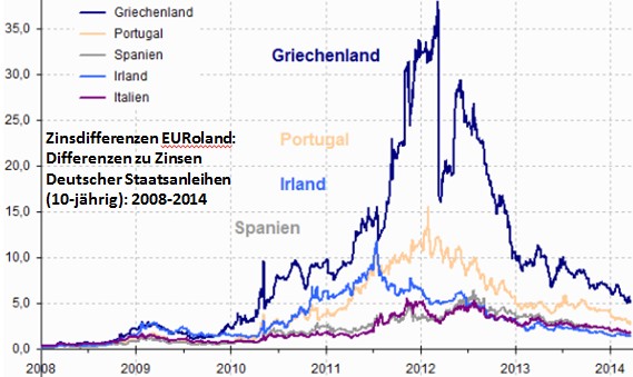 a) Der o.g. „QE-Schlüssel“ wird doch niemals ein starrer, fixer, nach objektiven und gleichen Kriterien für alle sein! Das wäre geradezu widersinnig, denn angenommen es würden etwa Anleihen aller Euro-Staaten gleichermaßen etwa nach dem üblichen Kapitalverteilungs-Schlüssel der EZB aufgekauft würden: Deutschland hat hier einen Anteil von etwa 27%, d.h. eine objektive EZB müsste mit 27% der QE-Mittel deutsche Staatsanleihen kaufen – und mit 2,5% griechische; dadurch würden sich die Rendite-Spreads zwischen den EUR-Anleihen in keiner Weise verringern (was man ja bislang / seit 2010/12 über andere und nun offenbar nicht mehr ausreichende Stützungs-Maßnahmen für die PIFGS-Anleihen in eindrucksvoller Weise herbeigezaubert hat). Genau diese weitere, hoch künstliche Verringerung aber WOLLEN permanent den EUR rettenden Planwirte der EZB-Voodoo-Ökonomie erreichen bzw. beibehalten! Sonst macht die ganze QE-Aktion null Sinn!